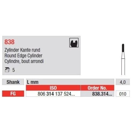 • Diamond Burs Cylinder with Round Edges FG 838 - 5 Pieces